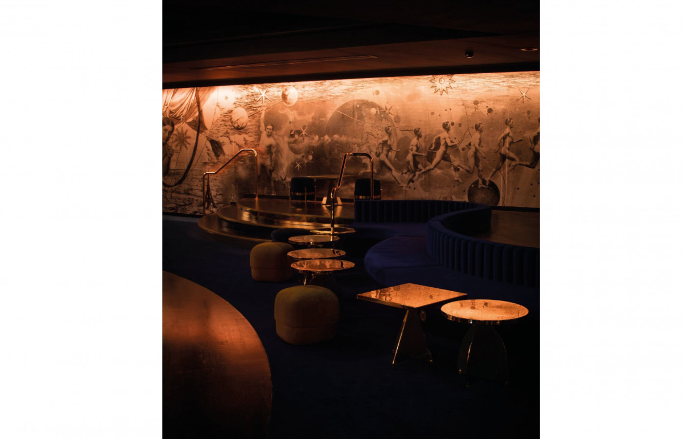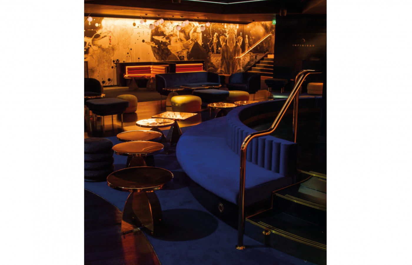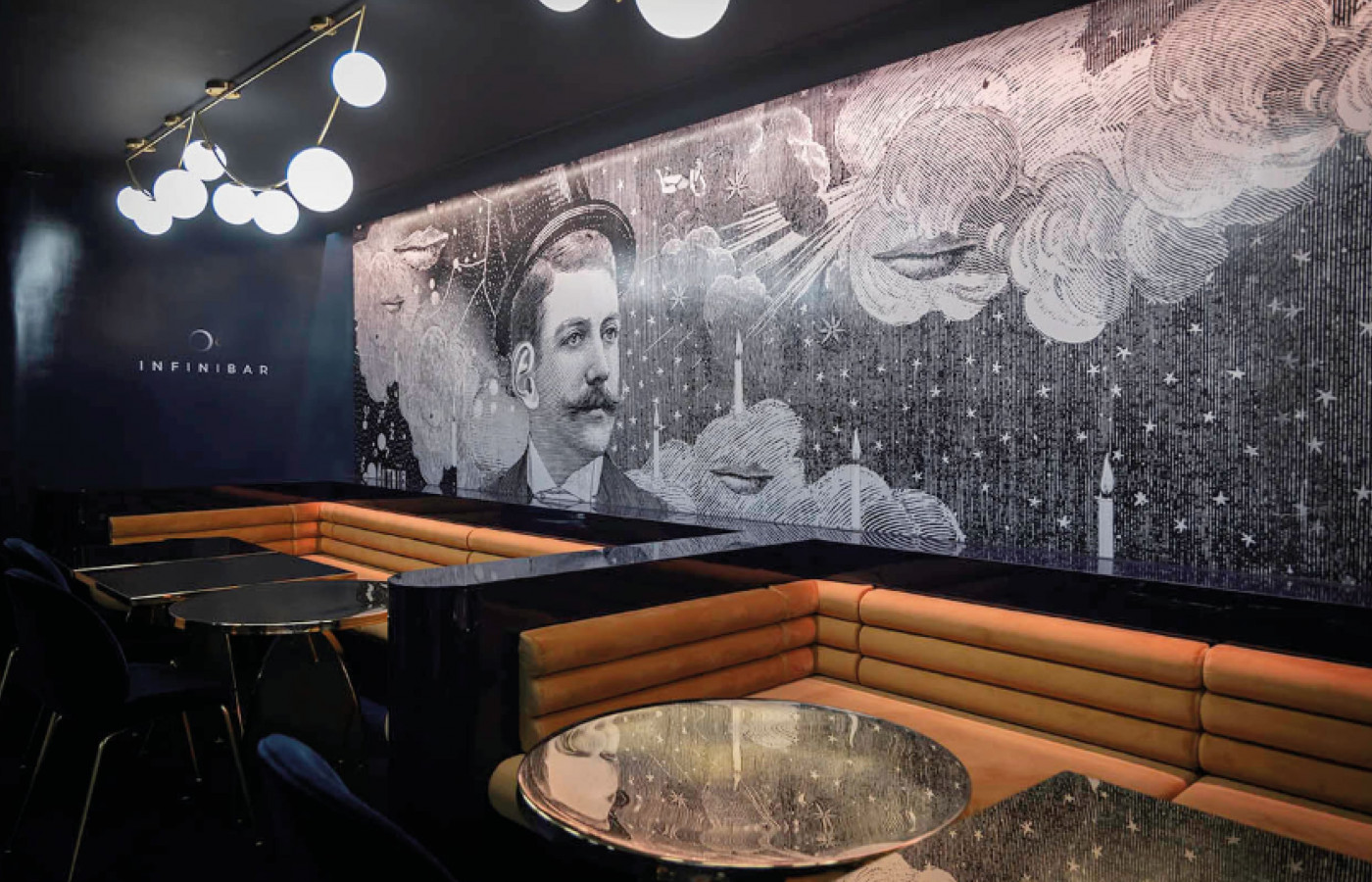 Le rendu de cet espace est futuriste. L'Infinibar fait pénétrer les visiteurs dans un "lieu-ellipse où l'espace-temps s'efface, et la scène se cristallise."